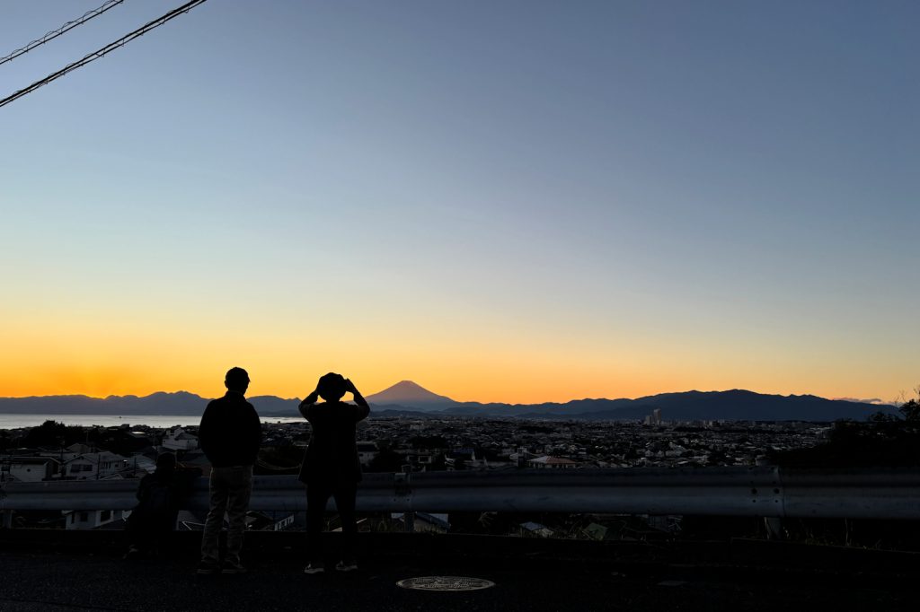 マジックアワーになると、片瀬山富士見坂の上には、夕焼けを楽しむ人々が続々とやってきます。