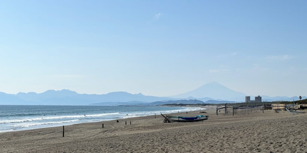 昼下がりの辻堂海岸は陽射しに恵まれて、江の島や富士山が美しく🗻✨