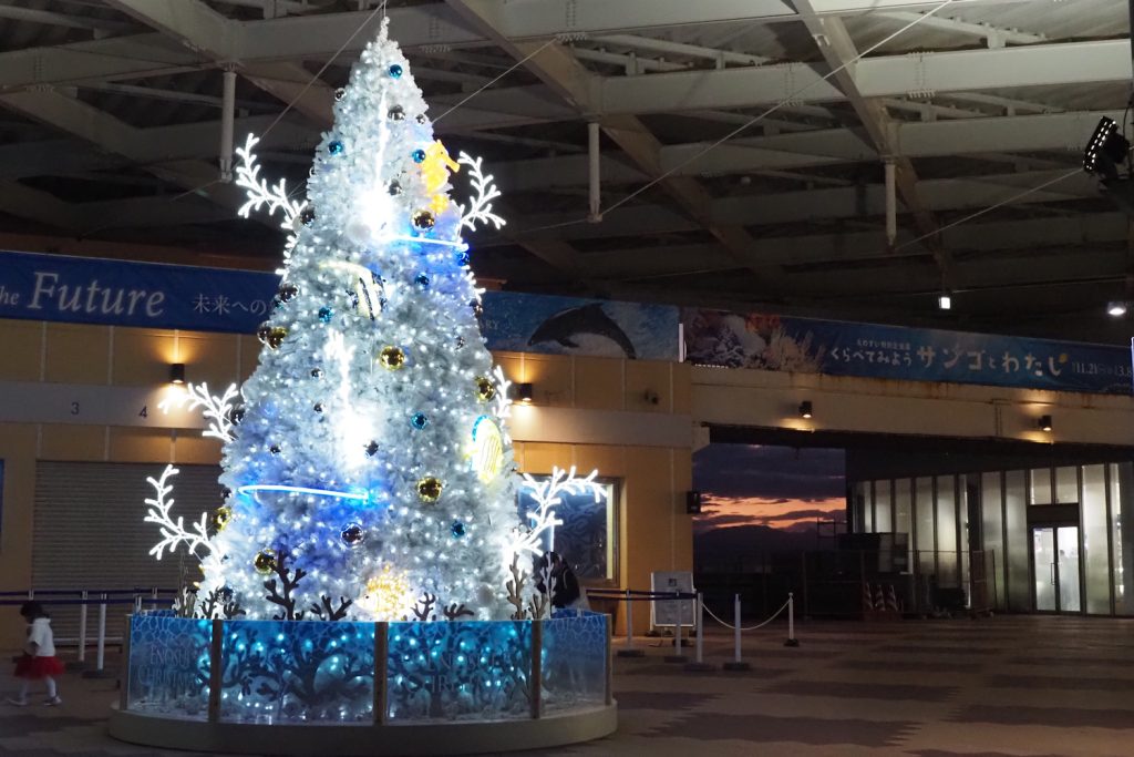 新江ノ島水族館前のお祭り広場に、今年も大きなツリーが登場しています🎄