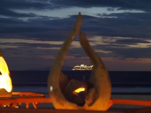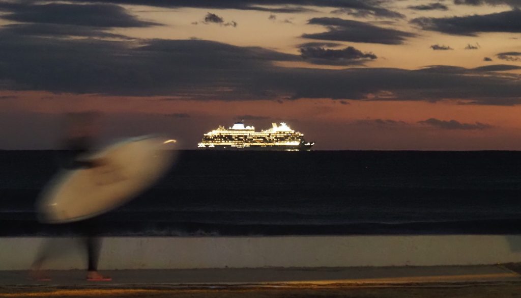 そんな時、江の島岩屋の向こうから大きな客船が現れて驚きました🚢👀❣