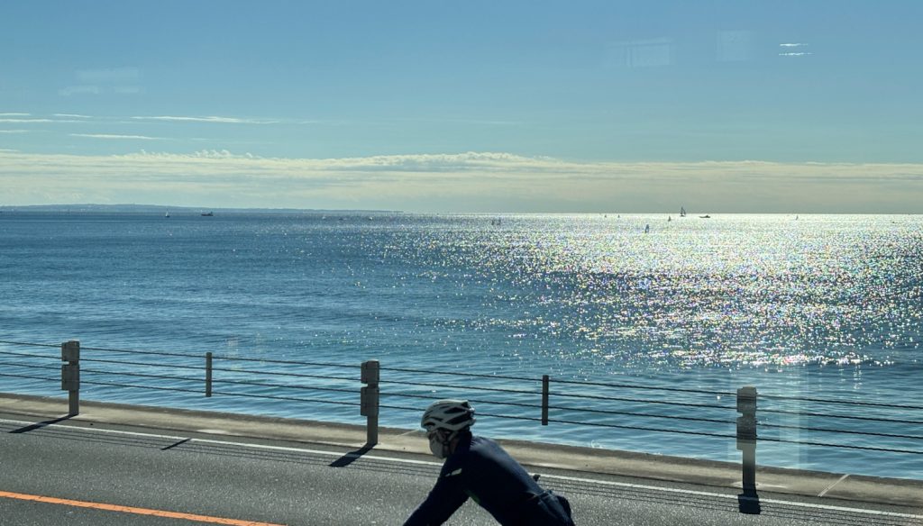 藤沢駅を出た江ノ電は海へと向かい、江の島~腰越を過ぎ、カーブを曲がるといよいよ七里ヶ浜が見えてきます🏄👀